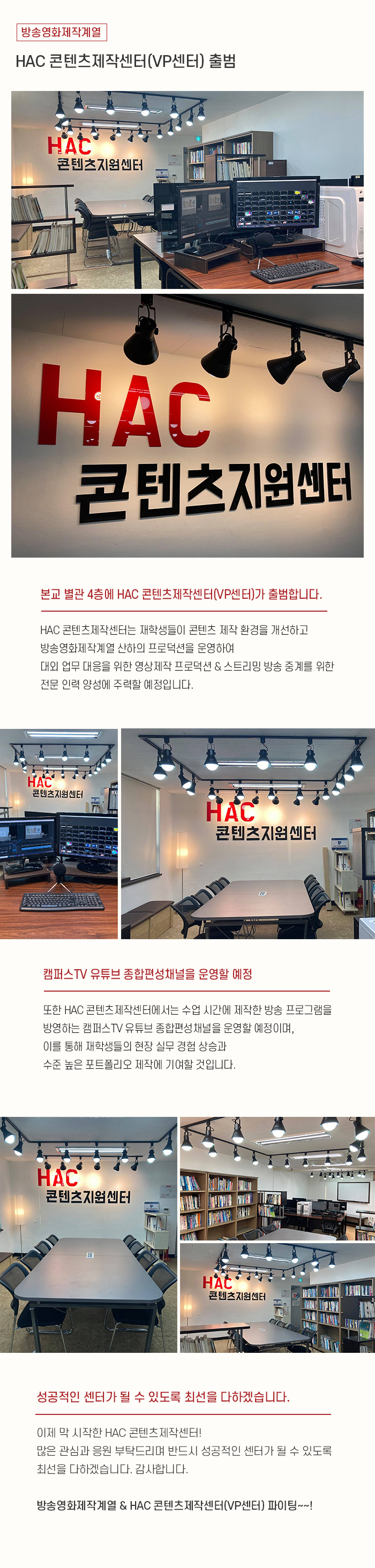 방송영화제작계열 HAC 콘텐츠제작센터(VP센터) 출범