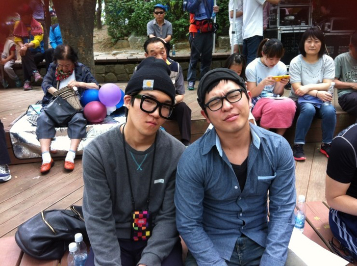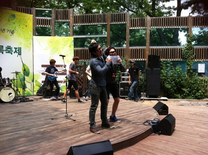 우장산 신록축제의 사회를 맡은 개그학부 박광훈 학생과 이준혁 학생.