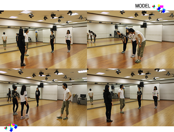 모델이 되기 위해서 필요한 워킹 연습, 자세, 다리의 위치, 위밍업등을 수업해주셨습니다.