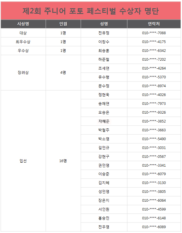제2회 주니어포토페스티벌 최종 수상작 발표!