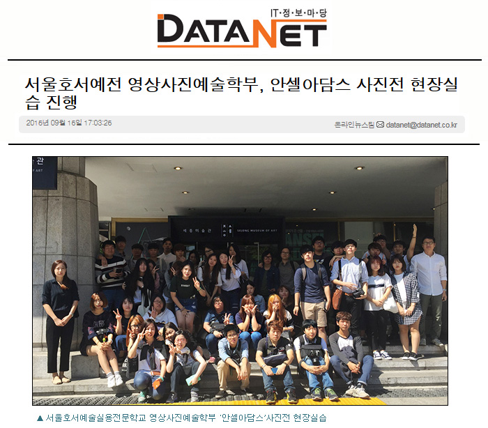 서울호서예술실용전문학교(이하 서울호서예전)영상사진예술학부에서는 지난 이달 10일 박덕수 교수가 주관하는 안셀아담스 사진전에 단체 현장실습을 진행했다.