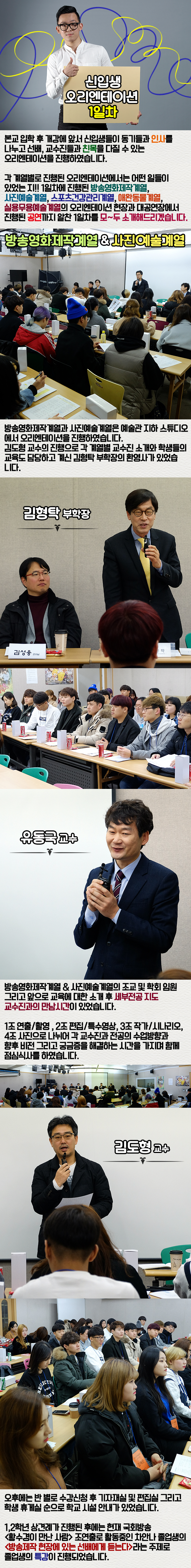 본교 입학 후 개강에 앞서 신입생들이 동기들과 인사를 나누고 선배, 교수진들과 친목을 다질 수 있는 오리엔테이션을 진행하였습니다.