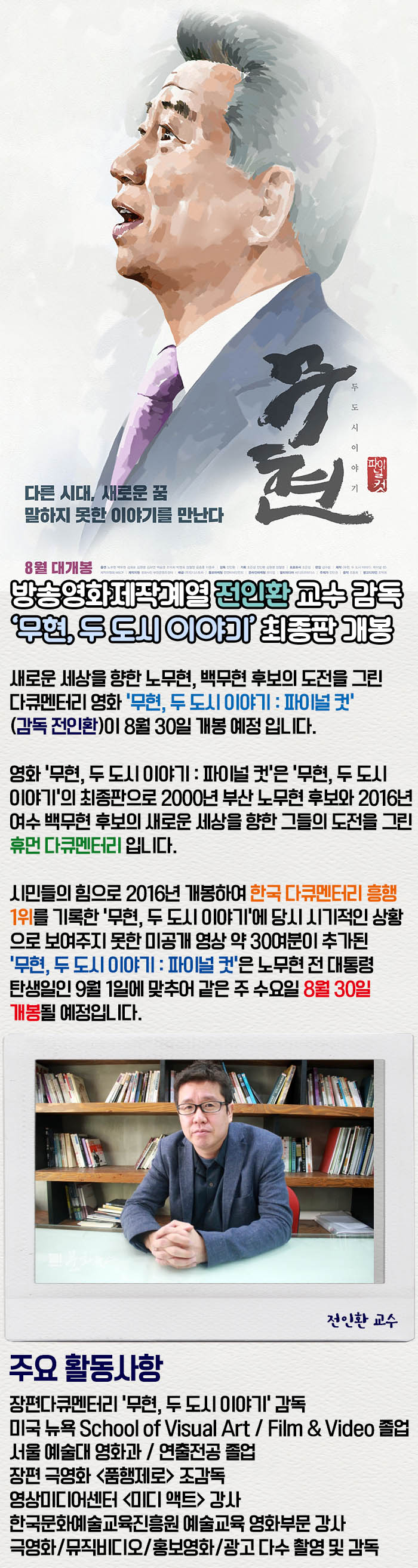 전인환 교수 감독 ‘무현, 두 도시 이야기’ 최종판 개봉