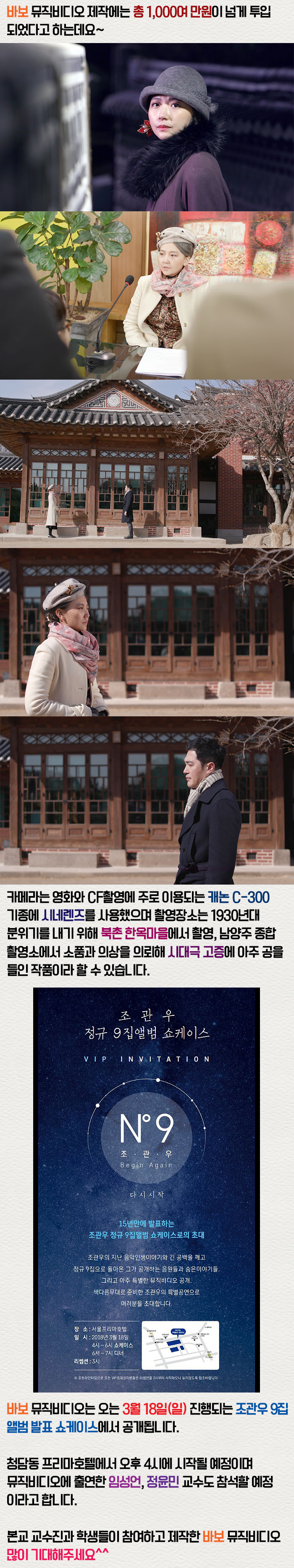 지난 2월 가수 조관우의 9집 앨범의 타이틀곡 '바보'의 뮤직비디오 촬영이 진행되었습니다.