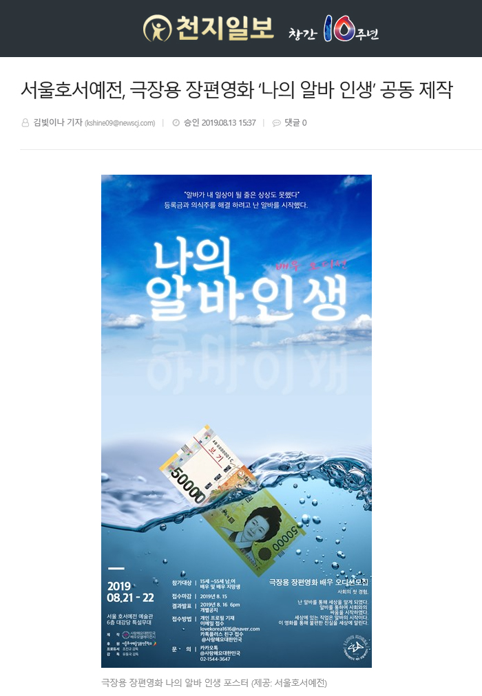 [언론보도]극장용 장편영화 ‘나의 알바 인생’ 공동 제작