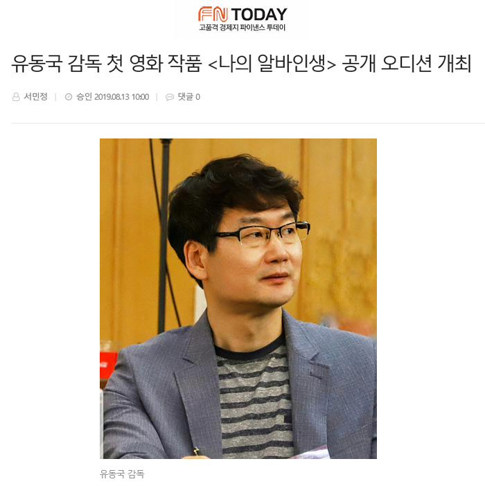 [언론보도]유동국 감독 첫 영화 작품 <나의 알바인생> 공개 오디션 개최