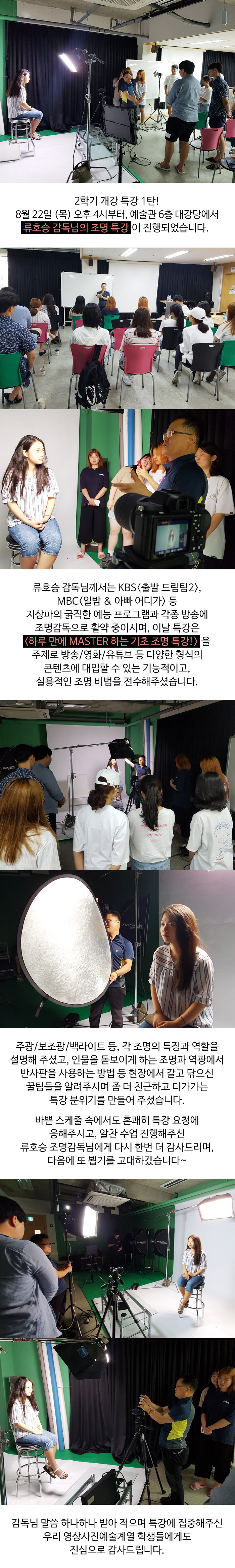 8월 22일 (목) 오후 4시부터, 예술관 6층 대강당에서 류호승 감독님의 조명 특강이 진행되었습니다.