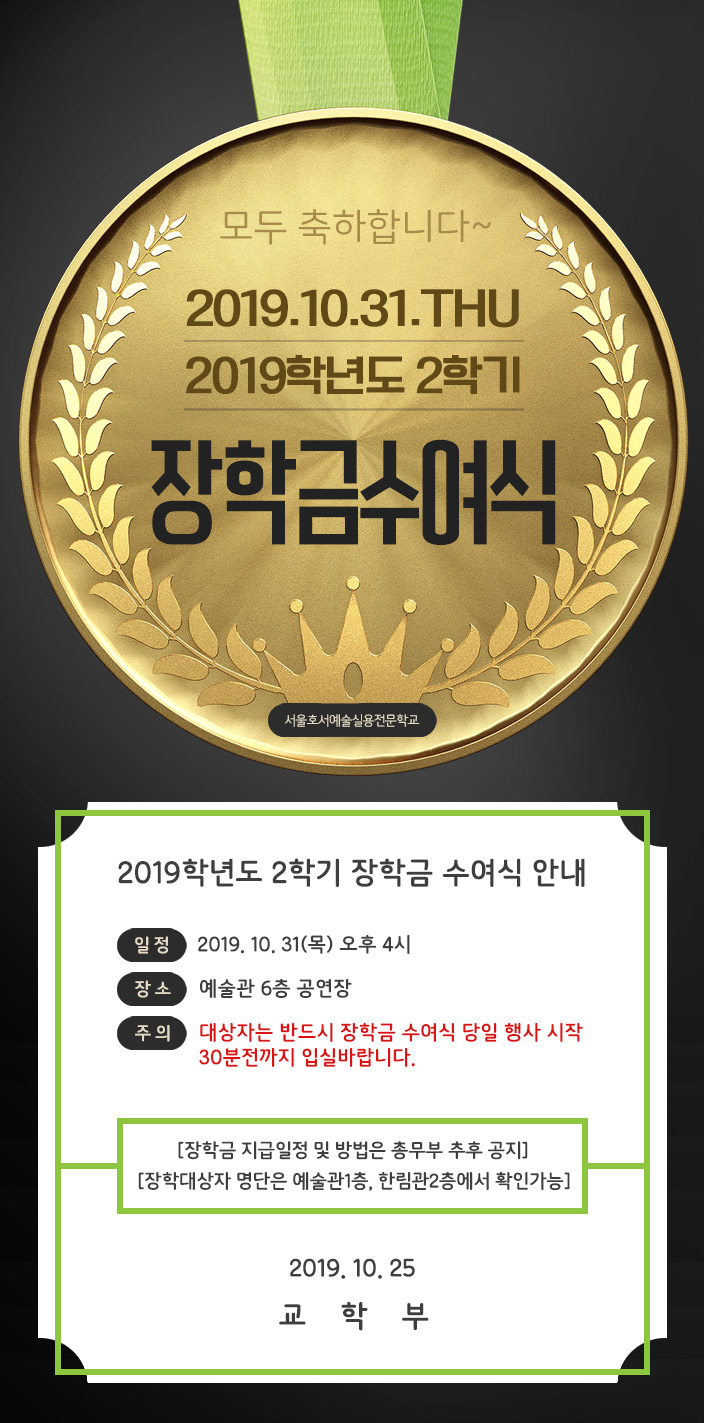 2019학년도 2학기 장학금 수여식 안내