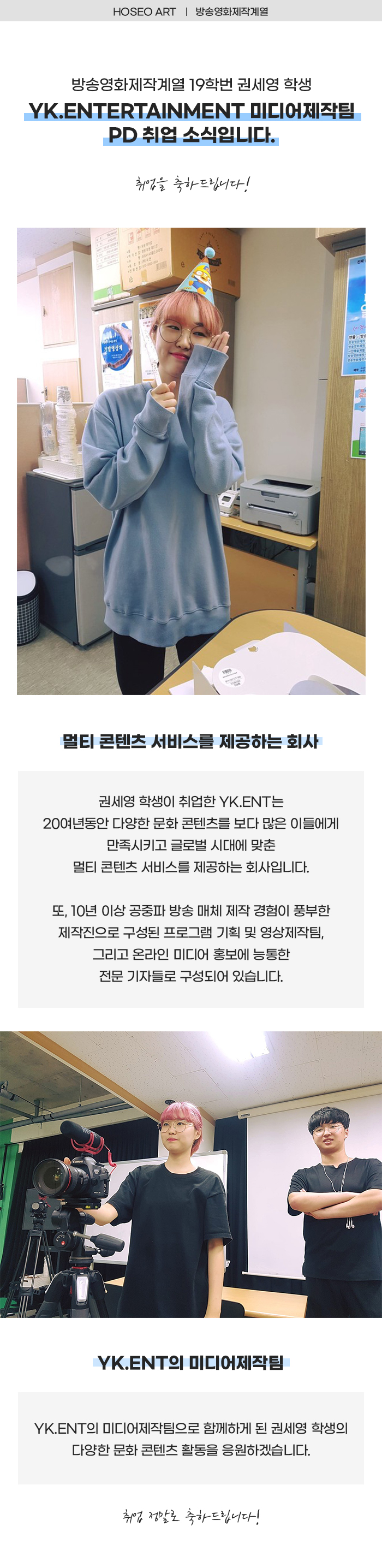 방송영화제작계열 19학번 권세영, YK. Entertainment 미디어제작팀 PD 취업