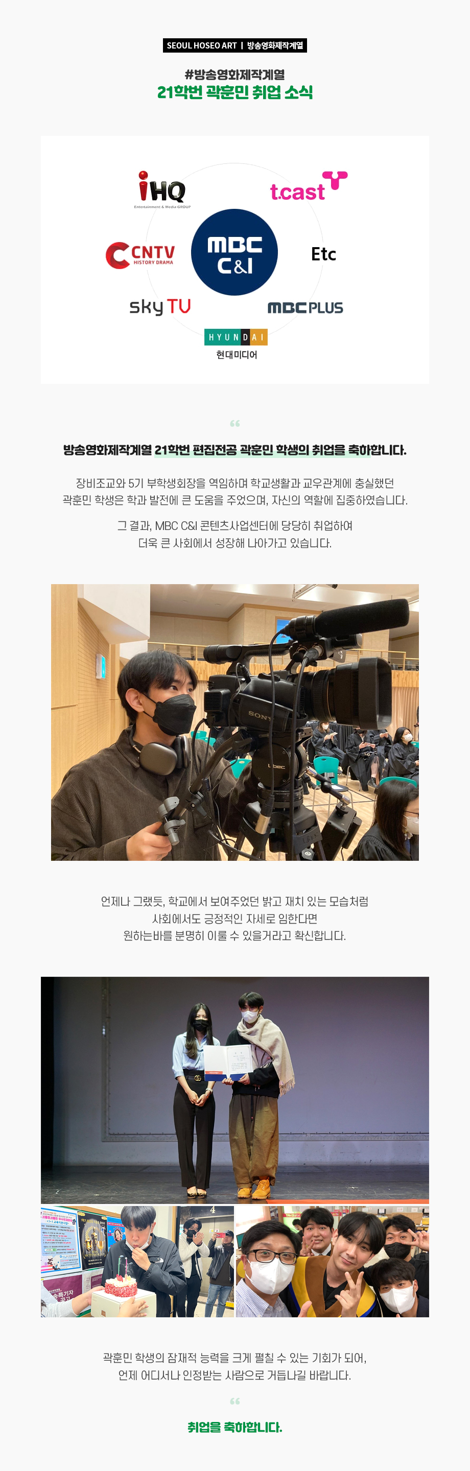 방송영화제작계열 곽훈민 MBC C&I 취업 소식