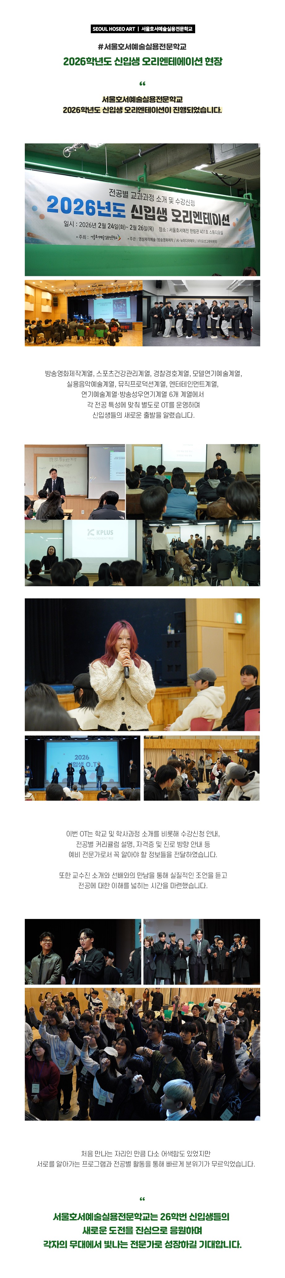 서울호서예술실용전문학교 2026학년도 신입생 OT 현장