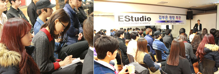 (열심히 특강을 듣고있는 서울호서예술전문대학 모델과 학생들)