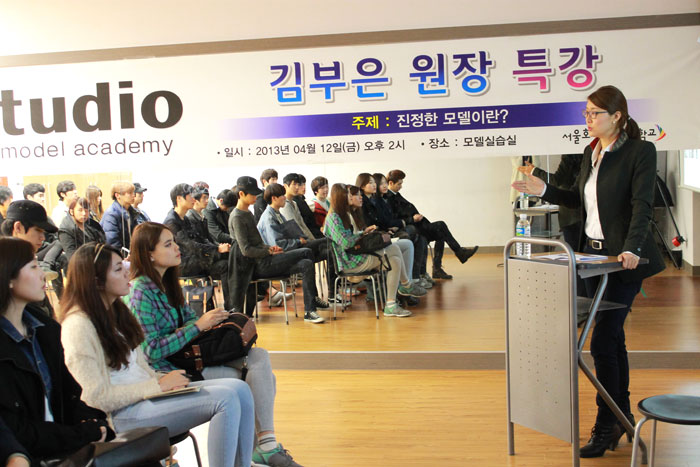 김부은 원장의 모델의 십계명을 끝으로 오늘의 특강이 끝났습니다. 모델을 준비하는 본교 모델과 학생들에게 오늘의 강연이 또 하나의 기회가 되고, 자신을 위한 투자가 되었을 거라 생각합니다. 꿈을 향해 멋지게 워킹 하는 본교 모델과 학생들이 되기를 바라면서 파이팅!