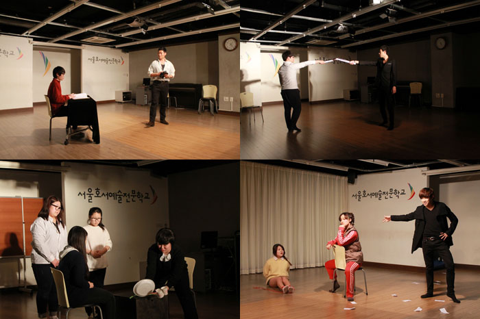 셰익스피어의 대표작품인 '한여름밤의 꿈','로미오와 줄리엣','베니스의 상인','말괄량이 길들이기' 등 많은 작품을 연기하는 학생들.