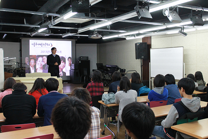 실용음악예술학부 학생들은 자기소개를 하며 '오늘의 자랑'이라는 주제로 수업이 진행되었어요. 서로 인사를 나눈 후 즐겁게 수업을 했답니다.