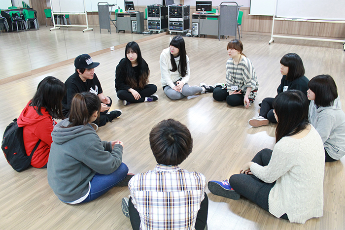 실용무용예술학부 학생들은 나경식 교수님과 연습실에 둘러 앉아 '춤'에 대한 얘기를 나눴습니다.