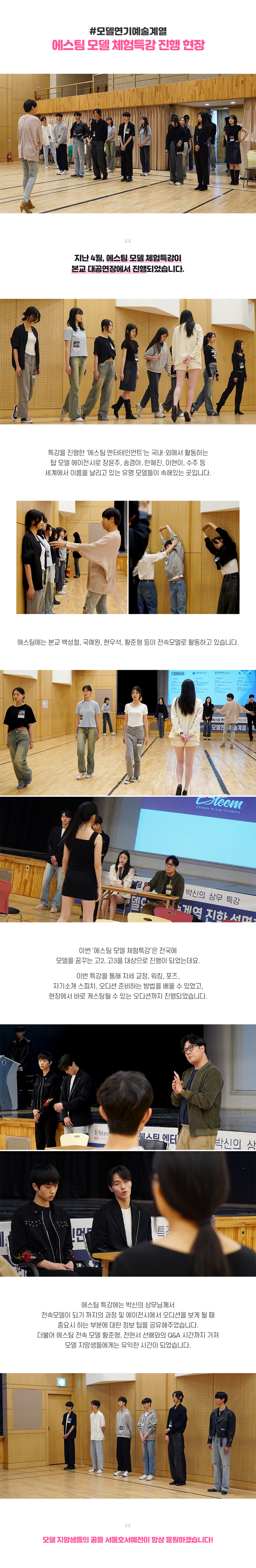 모델연기예술계열 에스팀 모델 체험특강 진행 현장