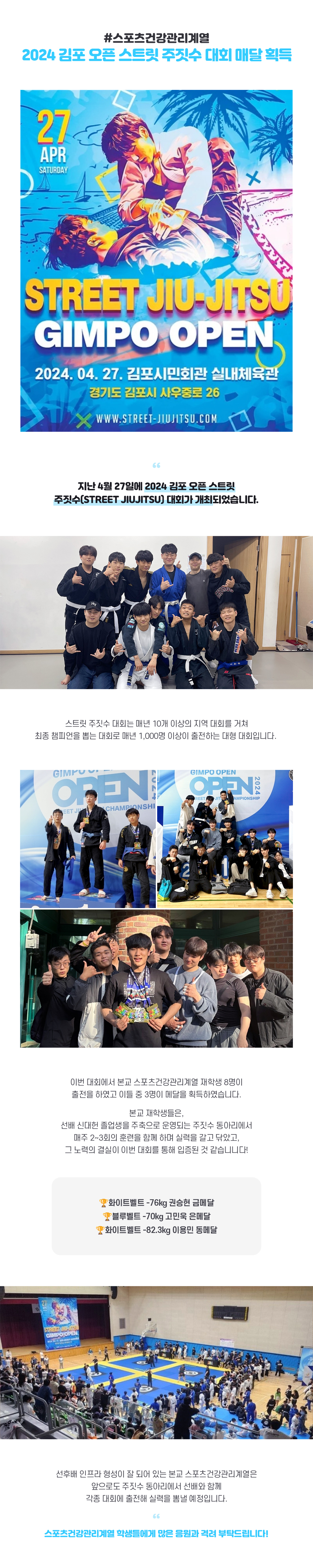 스포츠건강관리계열 2024 김포 오픈 스트릿 주짓수 대회 매달 획득
