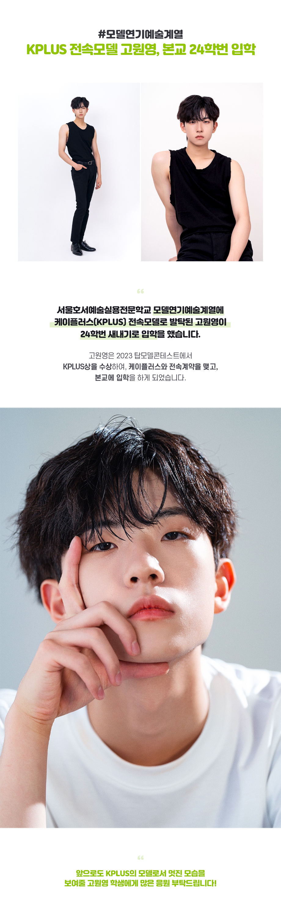 KPLUS 전속모델 고원영, 본교 24학번 입학