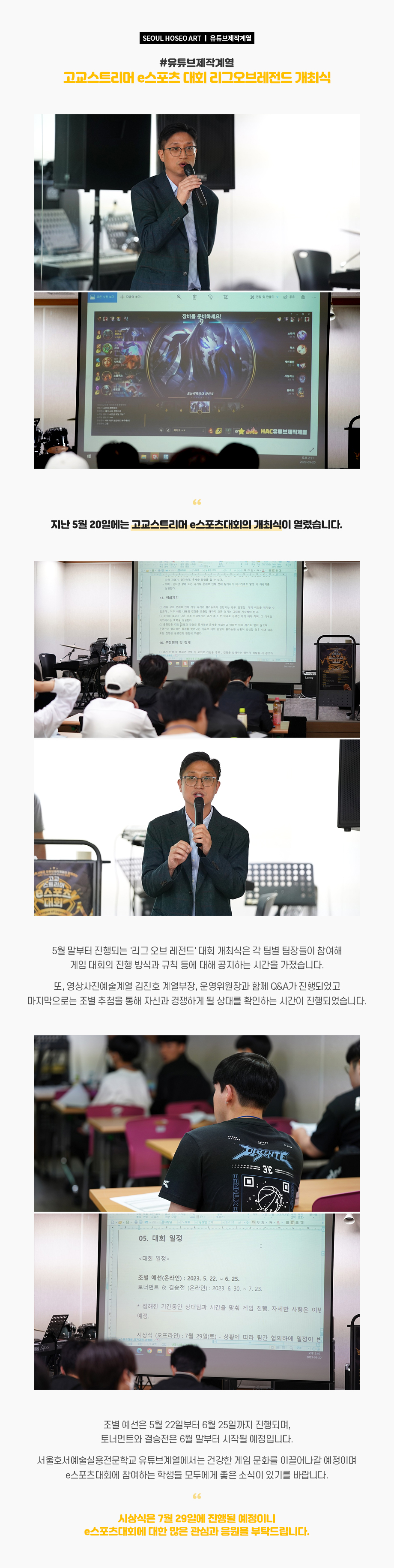 유튜브제작계열 고교스트리머 e스포츠 대회 리그오브레전드 개최식