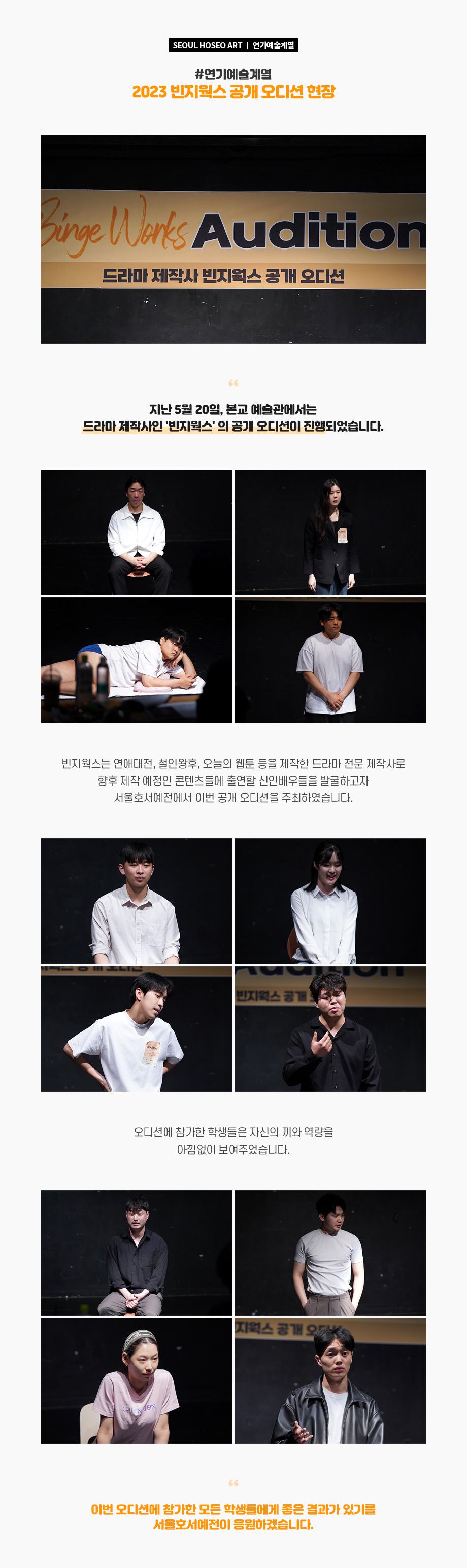 연기예술계열 2023 빈지웍스 공개 오디션 현장