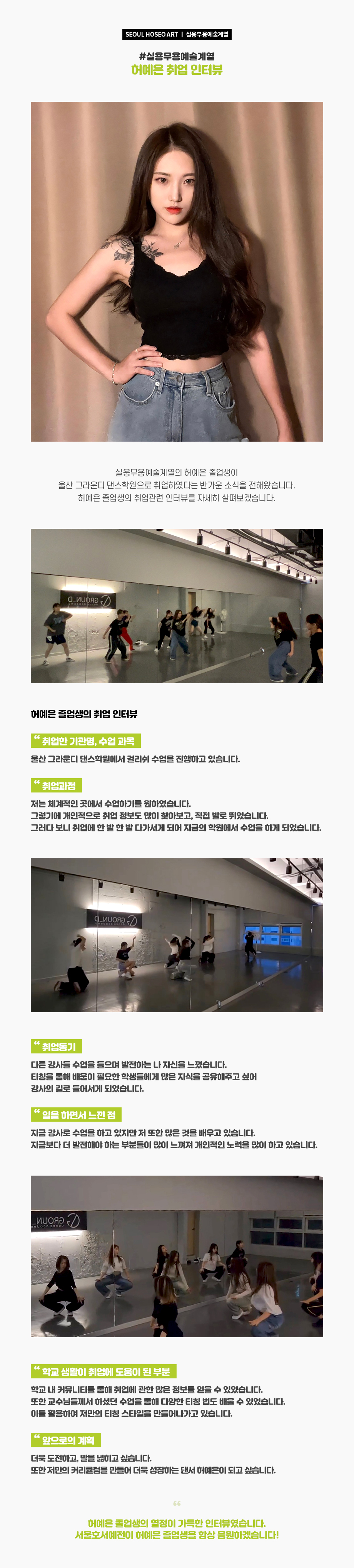 실용무용예술계열 허예은 취업 인터뷰