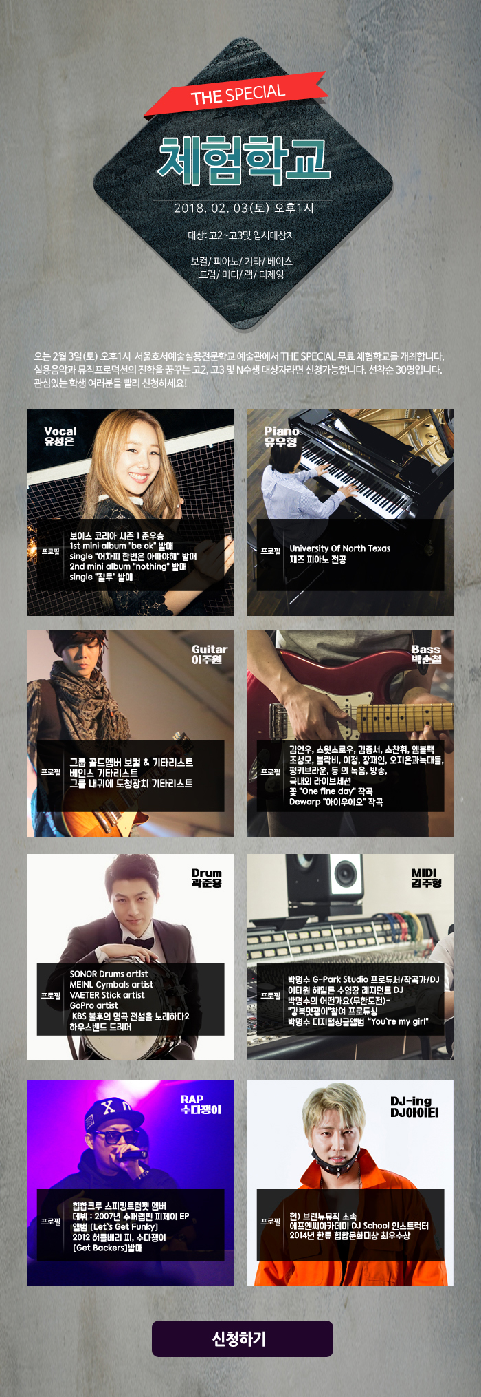 <실용음악>스폐셜 체험학교 신청하기