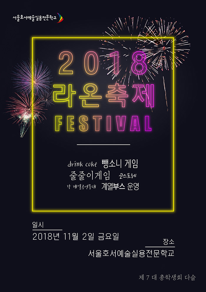 2018 라온축제가 오는 11월 2일(금) 오전 10시 부터 진행됩니다! 많이들 오셔서 함께 즐기세요~!