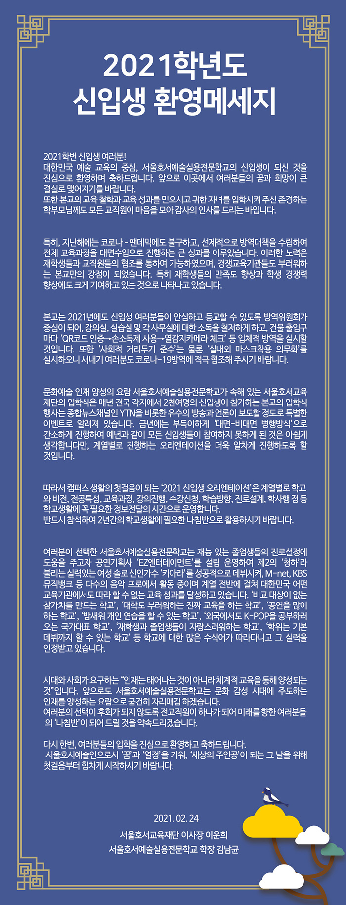 2021학년도 신입생 환영메세지