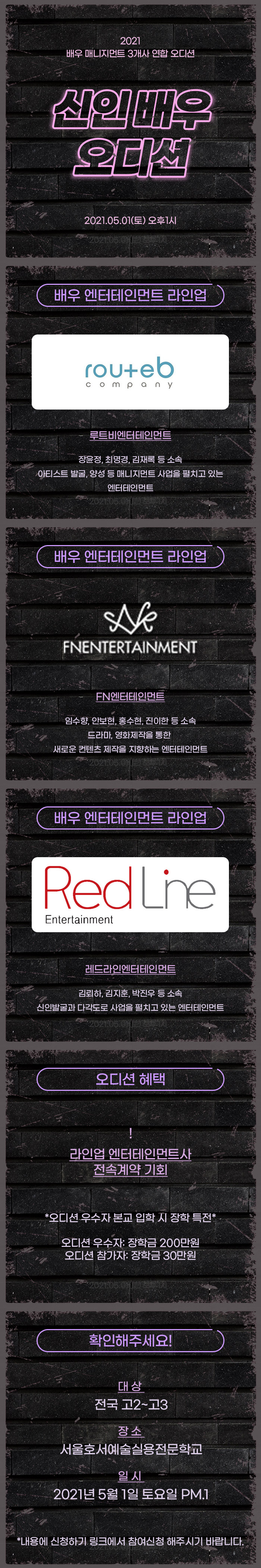 [연기예술계열] 배우 매니지먼트 3개사 연합 오디션 신청하기