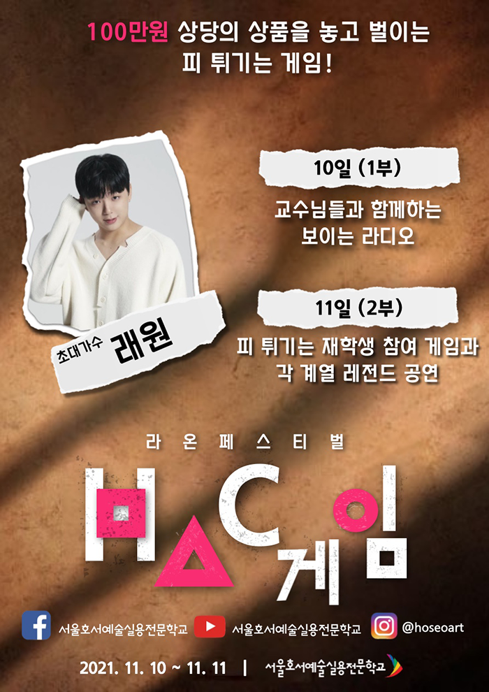 2021 라온페이스티벌이 오는 11월 10일(수)~11일(목) 까지 진행됩니다! 많이들 오셔서 함께 즐기세요~! 그리고, HAC게임에 꼭 함께해요!
