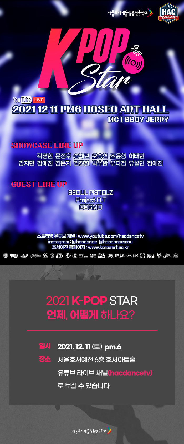 서울호서예술실용전문학교 케이팝계열 학생들의 특별한 무대인 "2021 K-POP STAR"가 개최됩니다.