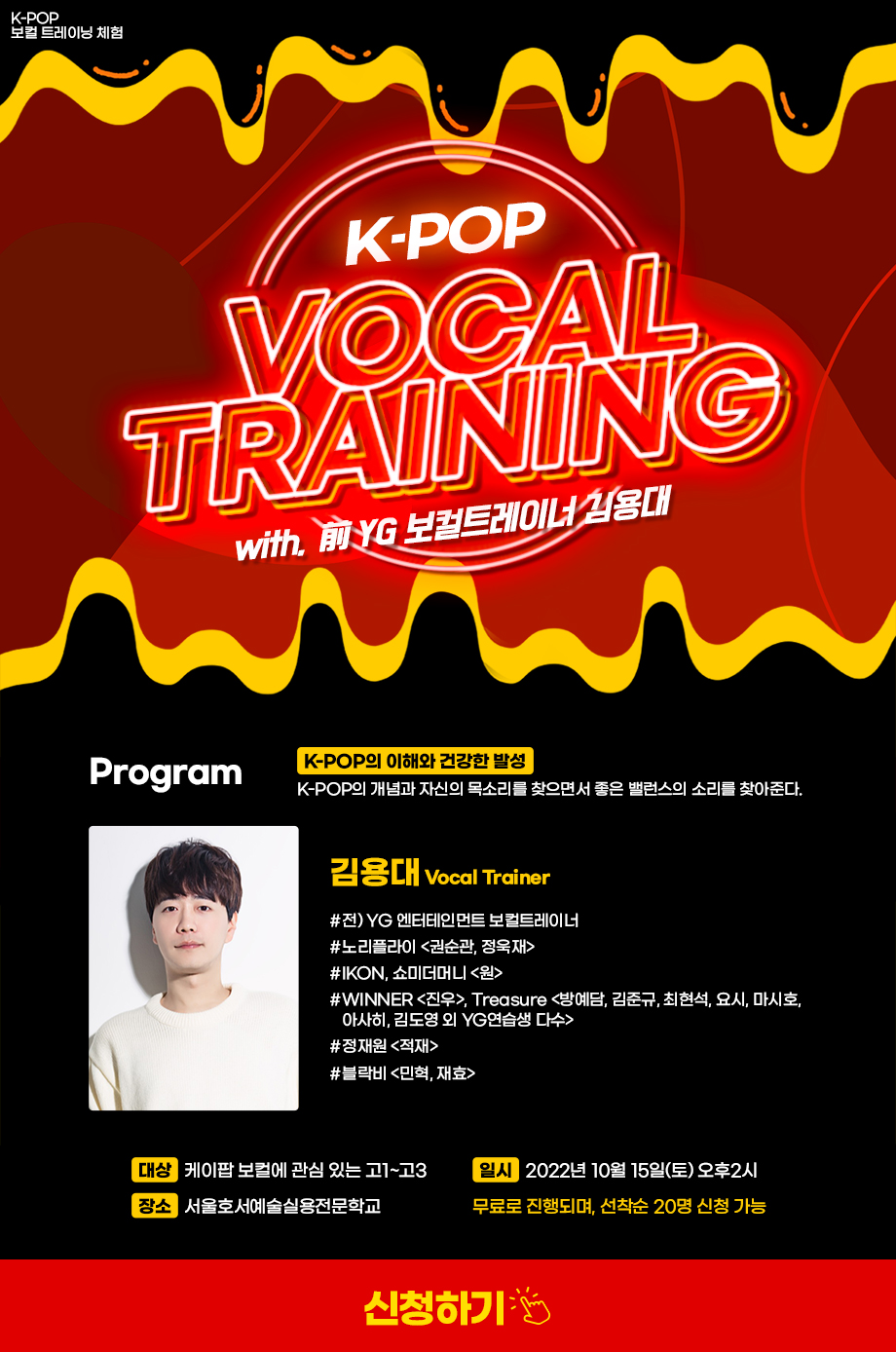 서울호서예술실용전문학교 K-POP계열 전 YG 보컬트레이너 김용대 특강 K-POP 보컬 트레이닝 체험 신청하기