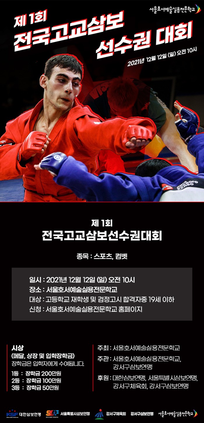 제1회 전국고교삼보선수권대회가 12월 12일(일) 서울호서예술실용전문학교에서 펼쳐집니다.