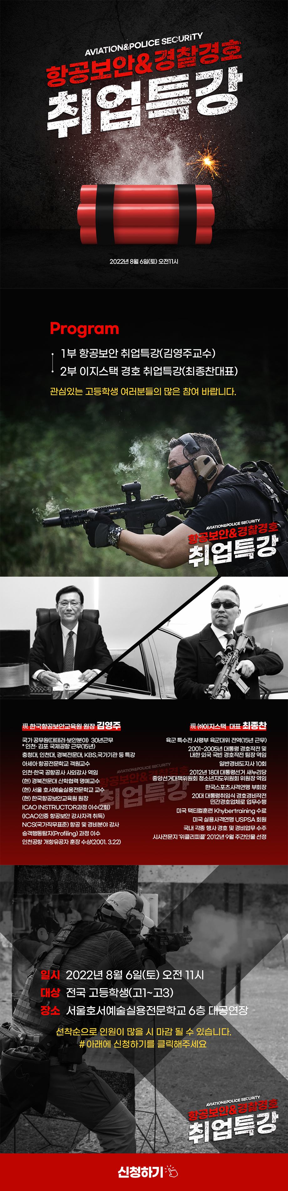서울호서예술실용전문학교 경찰경호계열 8월 체험학교 항공보안&경찰경호 취업특강 신청하기