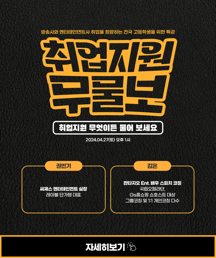서울호서예술실용전문학교 엔터테인먼트계열 방송사와 엔터테인먼트사 취업을 희망하는 전국 고등학생을 위한 특강 2024 취업지원 무물보 신청하기