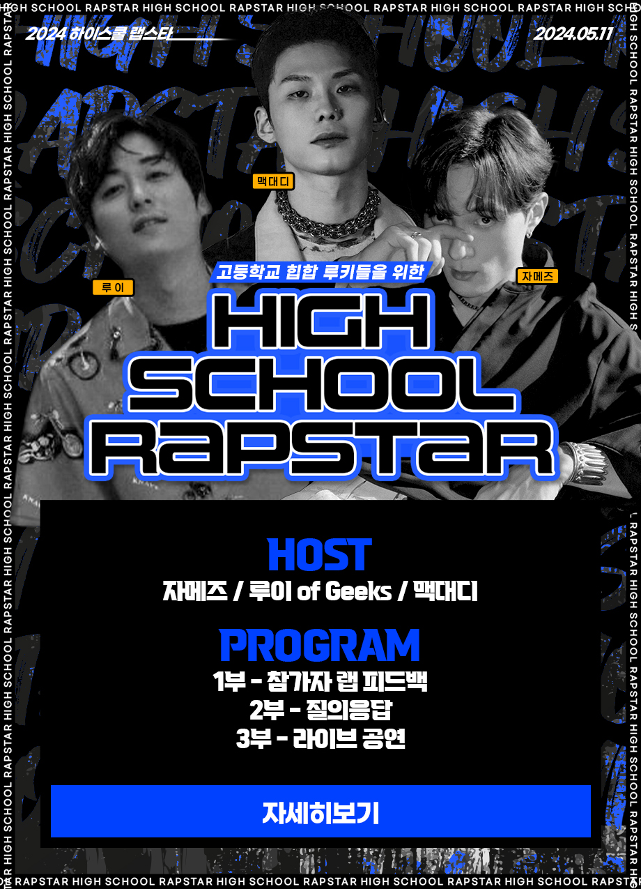 서울호서예술실용전문학교 뮤직프로덕션계열 고등학교 힙합 루키들을 위한 특강 2024 하이스쿨 랩스타 신청하기 [호스트-자메즈/루이of긱스/맥대디]