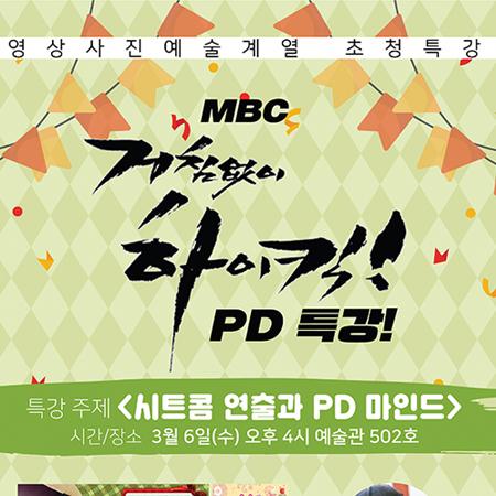 [언론보도]'거침없이 하이킥' 김창동PD '초청특강서울호서예술실용전문학교(이하 호서예전) 방송영화제작계열이 오는 3월 6일(수) 오후4시 팬엔터테인먼트 제작본부장 김창동PD 초청특강을 실시한다. 이번특강은 '시트콤 연출과 PD 마인드'의 주제로 크리에이터를 꿈꾸고, 연출에 대해 배울 수 있는 기회이다. 김창동PD는 SBS예능국PD, 초록뱀미디어 시트콤 감독, 에이나인미디어 드라마&a
