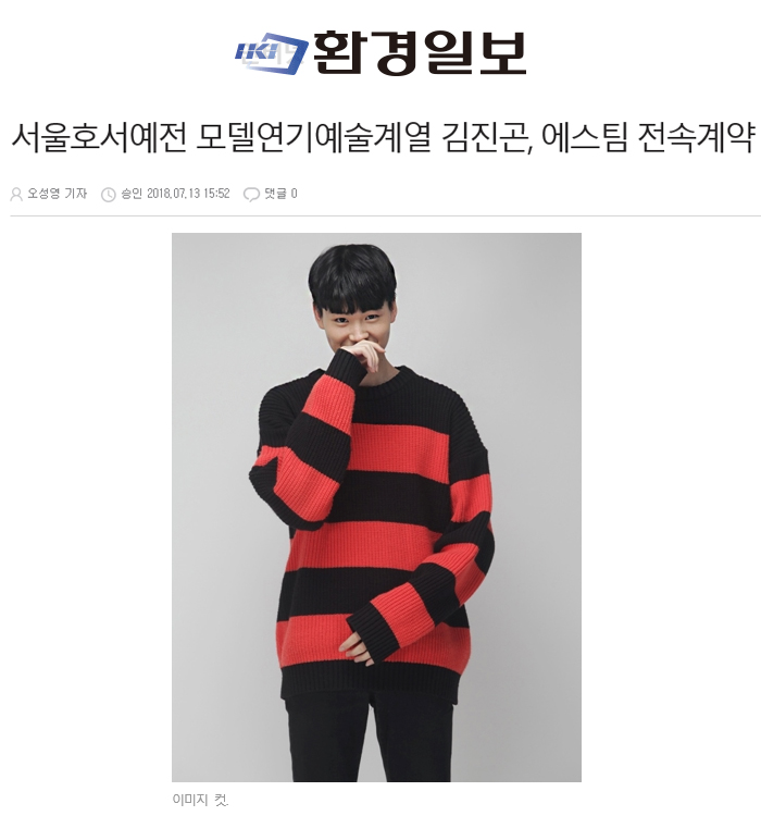 [환경일보] 오성영 기자 = 서울호서예술실용전문학교 모델과에 17학번으로 재학중인 김진곤 학생이 장윤주, 한혜진, 송해나 등이 소속된 에스팀 모델 에이전시에 전속계약을 맺었다.