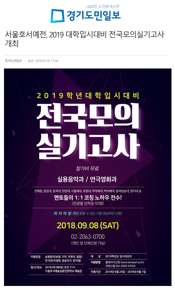 [경기도민일보]2019 대학입시대비 전국모의실기고사 개최