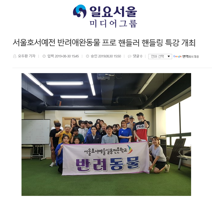 [언론보도]반려애완동물계열, 프로 핸들러 핸들링 특강 개최