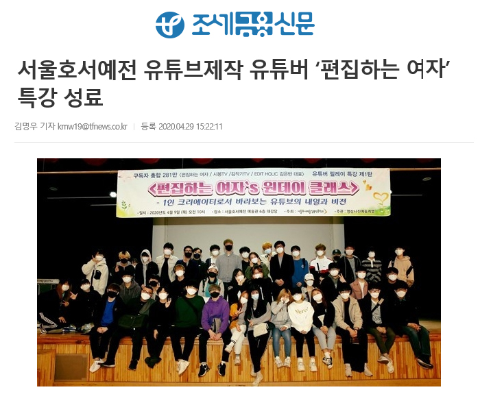 [언론보도]유튜브제작, 유튜버 ‘편집하는 여자’ 특강 성료