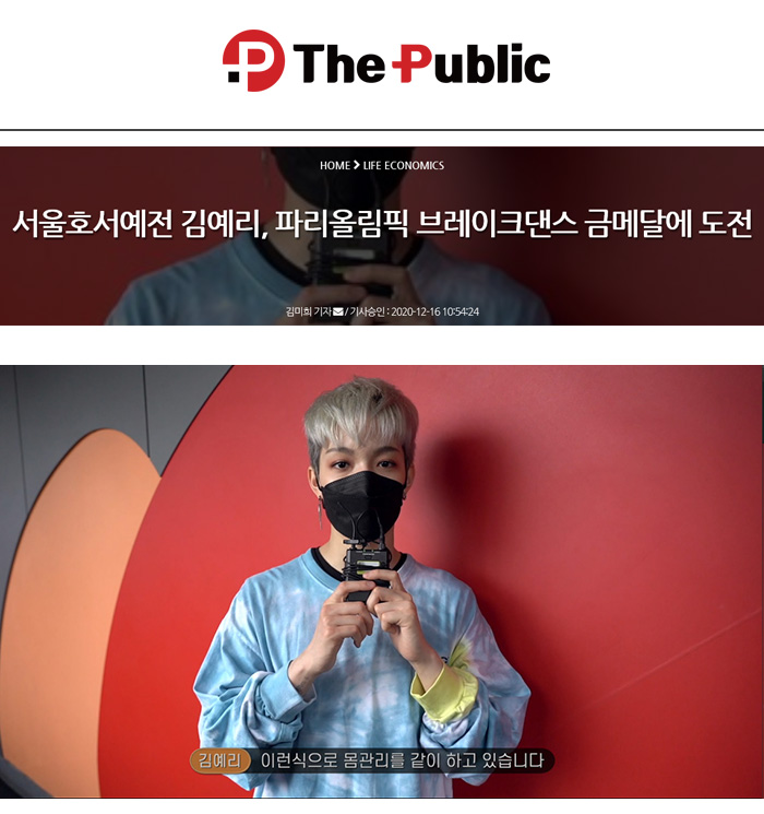 [언론보도]김예리, 파리올림픽 브레이크댄스 금메달에 도전