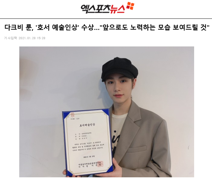 [언론보도]다크비 룬, '호서 예술인상' 수상…"앞으로도 노력하는 모습 보여드릴 것"