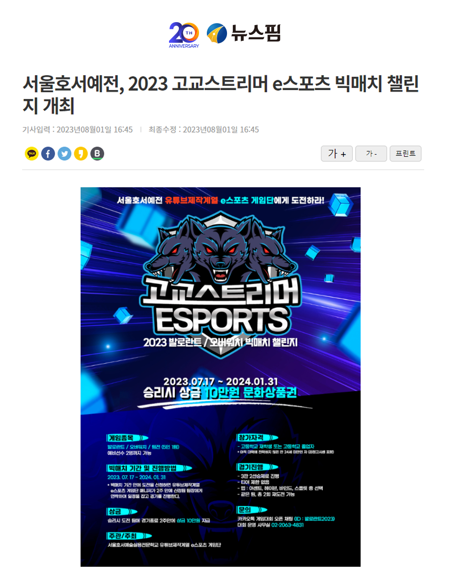 [언론보도] 2023 고교스트리머 e스포츠 빅매치 챌린지 개최