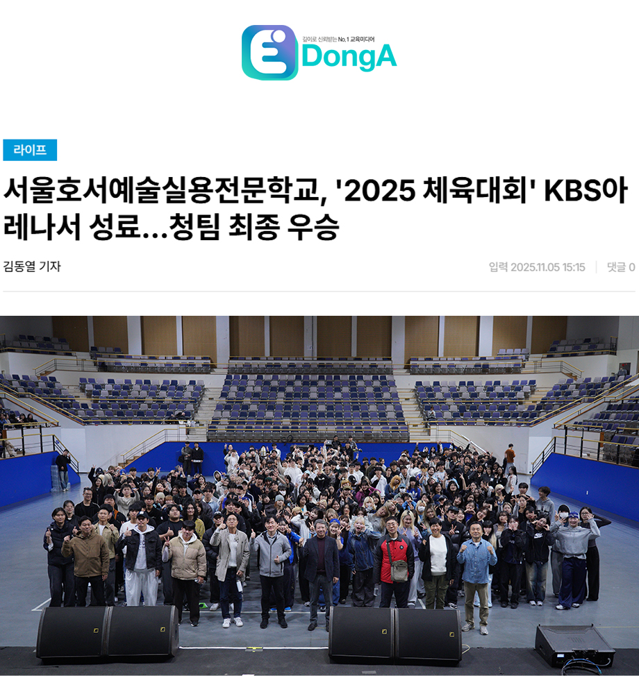 서울호서예술실용전문학교, '2025 체육대회' KBS아레나서 성료...청팀 최종 우승