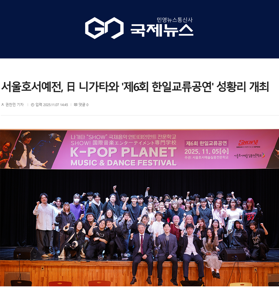 지난 11월 5일(수), 서울호서예술실용전문학교(이하 서울호서예전) 대공연장에서 '제6회 한일교류공연'이 성황리에 막을 내렸다.