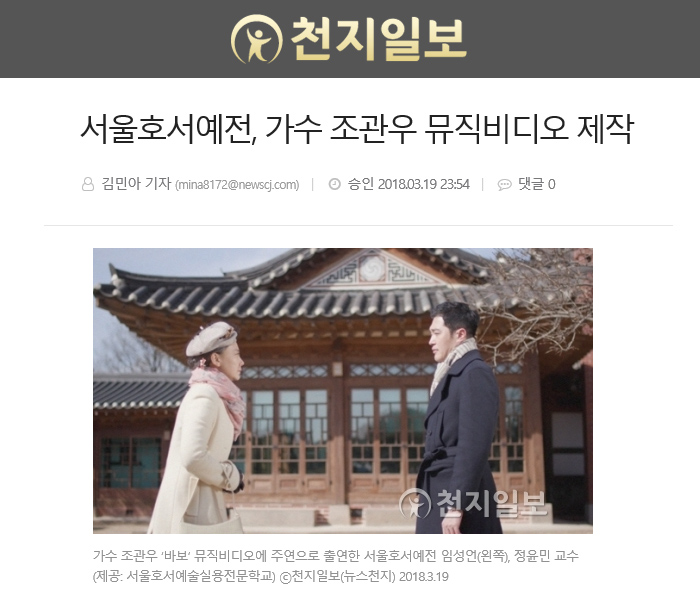 서울호서예술실용전문학교(서울호서예전) 방송영화제작계열이 가수 조관우의 9집 앨범의 타이틀곡, ‘바보’의 뮤직비디오를 제작했다.