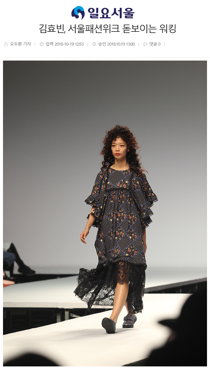18일 오후 서울 동대문 디자인플라자(DDP)에서 진행된 '헤라서울패션위크 S/S 2019' 빅팍 콜렉션에 참석한 서울호서예전 모델연기예술계열 김효빈 학생이 런웨이를 걷고 있다.