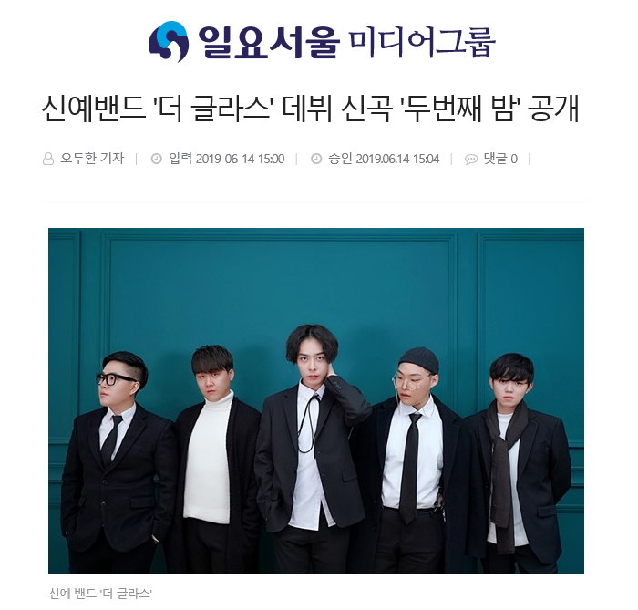 [언론보도]신예밴드 '더 글라스' 데뷔 신곡 '두번째 밤' 공개